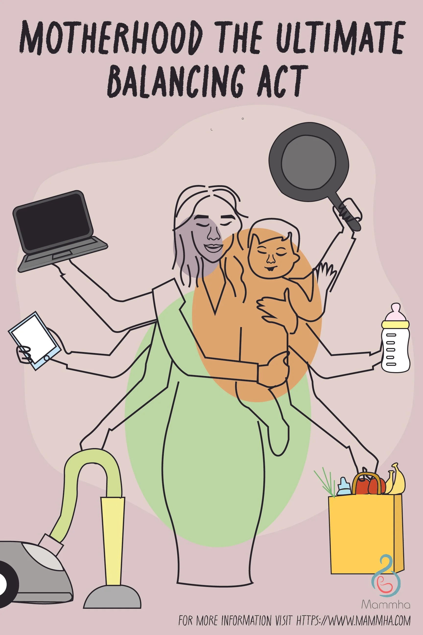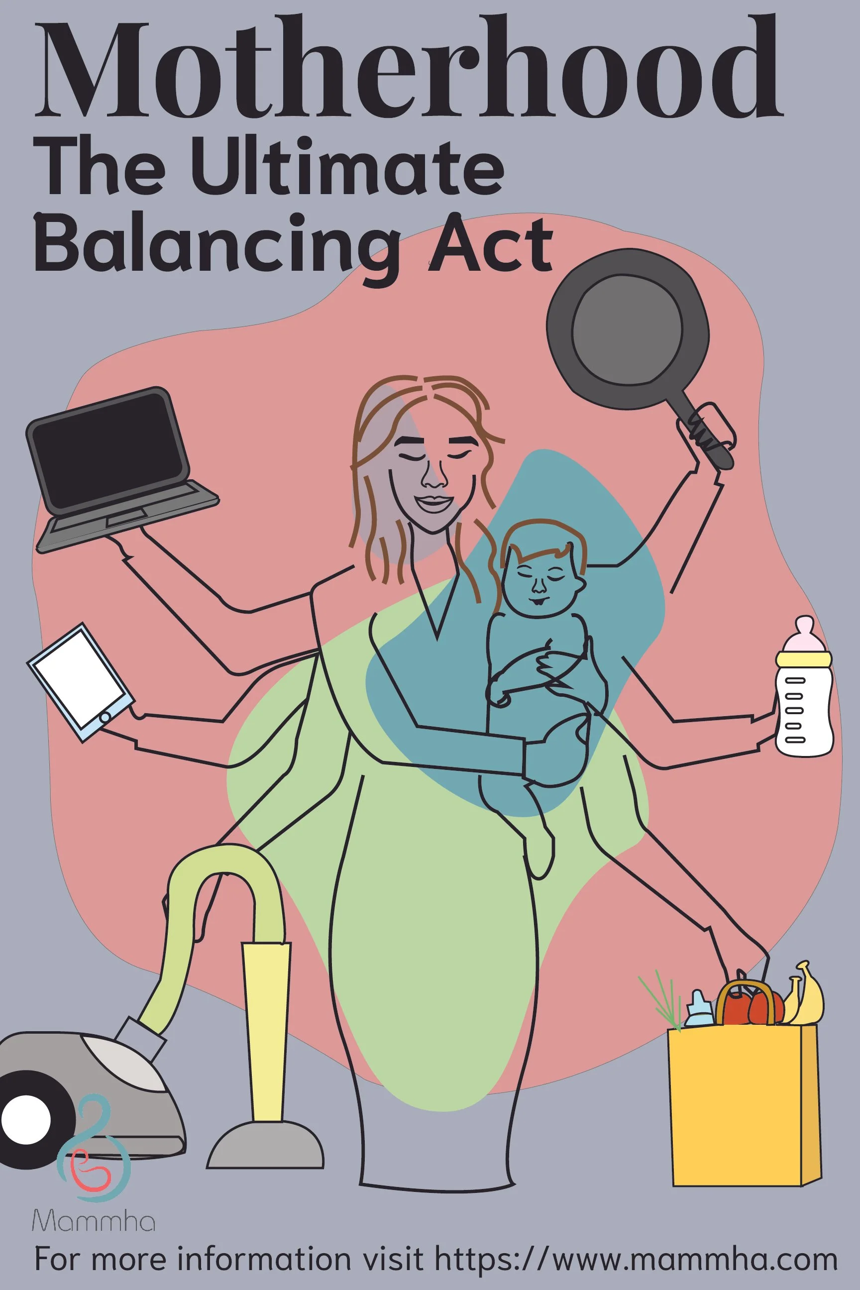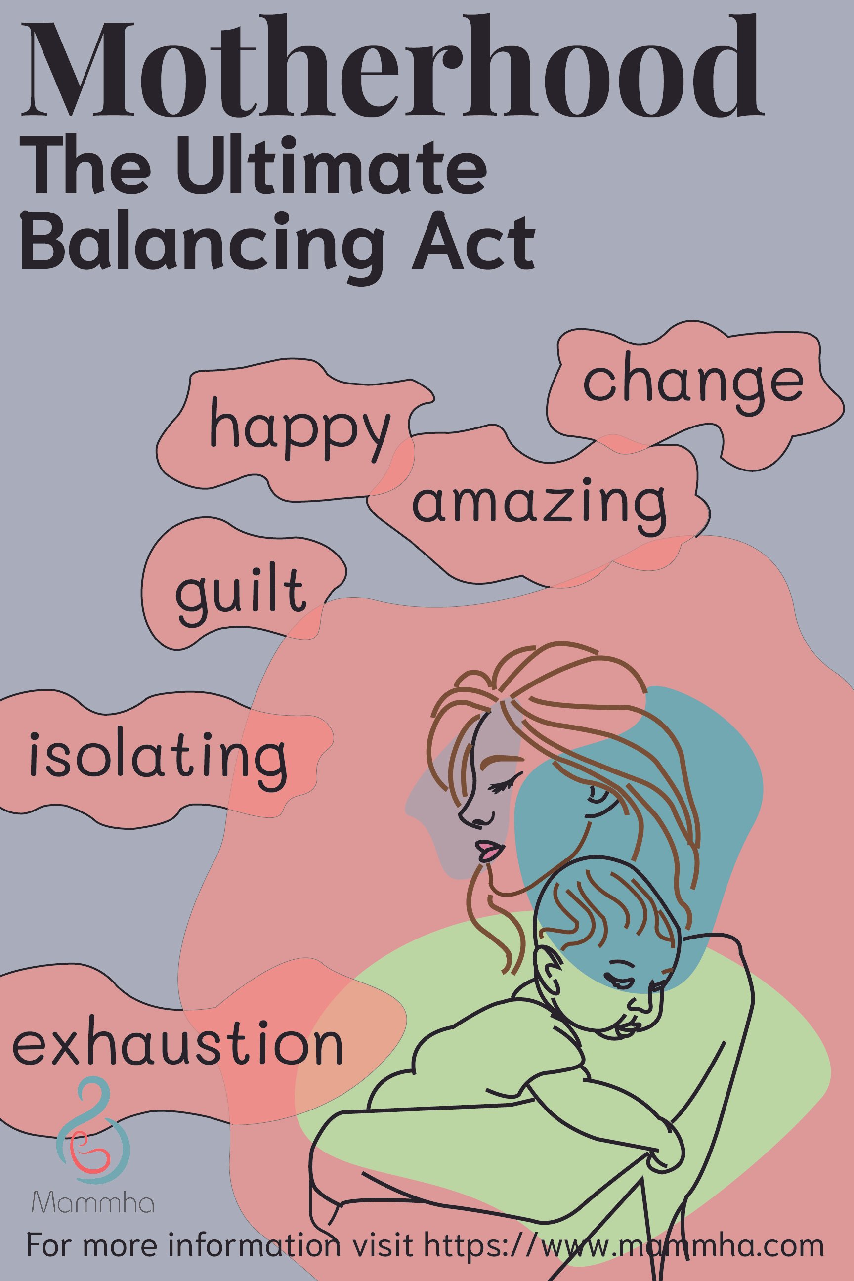 I wanted to use bright colors but not sticking to one specific color palette. I wanted the color palette to represent the chaos and the beauty of motherhood. I incorporated pastel along with bold colors.