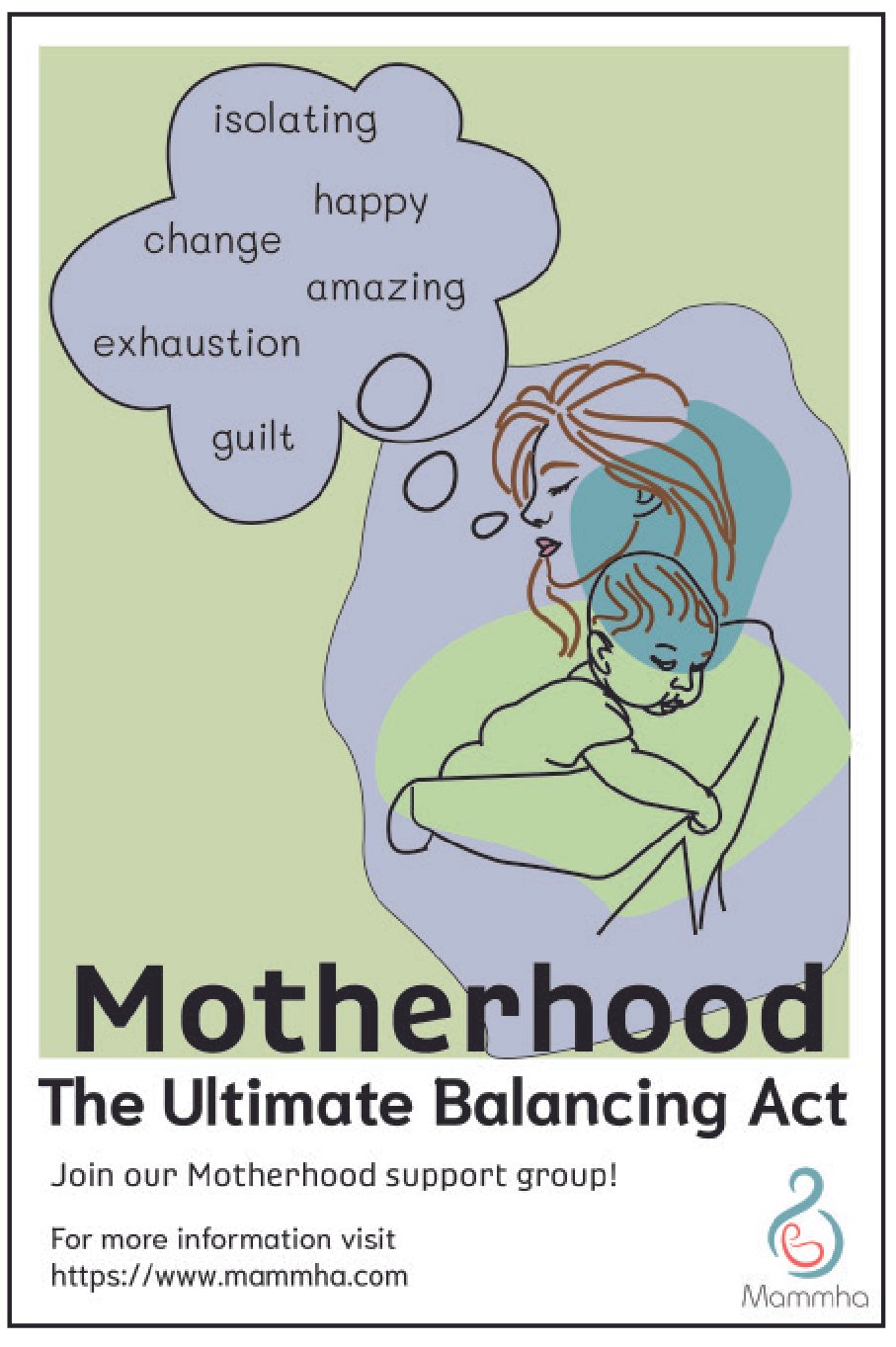 When coming up with my poster sketches, I wanted to show what all types of motherhood is like. In my initial idea I had three different concepts to go off of. The first was “motherhood the ultimate balancing act” the second was the” journey of motherhood” and the third idea was “it taking a village to raise children.” Each mother has a different experience and not all are the same. Which essentially made it hard for me to pick a specific piece to do as they all had good qualities. I ended up picking motherhood the ultimate balancing act.